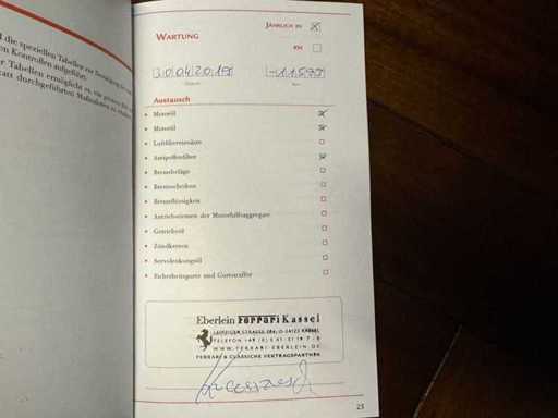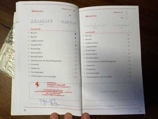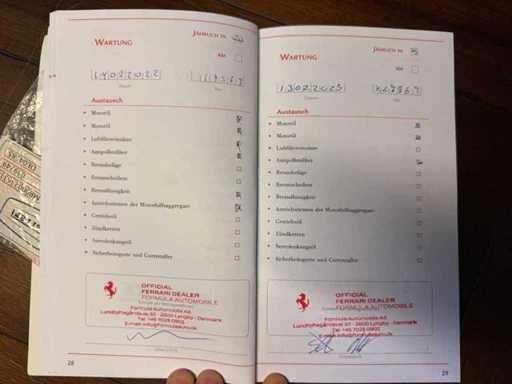 The maintenance was carried out entirely by the official Ferrari dealer. The last service took place on May 1, 2025, during which the spark plugs were replaced, among other things.
