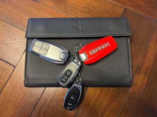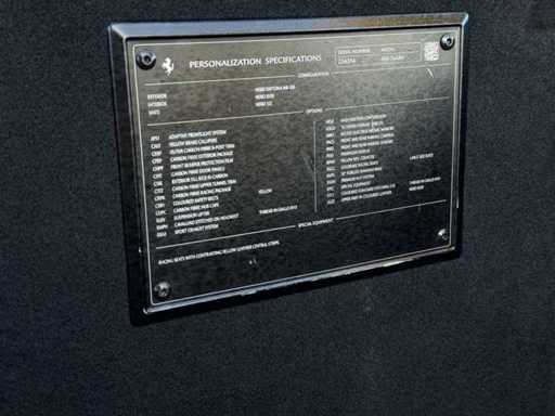 The exterior features carbon side intakes, rear light surround, front lip, side skirts and diffuser, and original Diamond Cut Ferrari rims with Michelin Pilot Sport summer tires in good condition. In addition, the car has front and rear parking sensors, and front and rear cameras for optimal visibility.