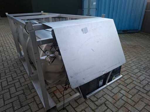 Year of construction: 2019, capacity: 1000 liters, equipped with cooler and compressor, stackable, fork recesses, dimensions: approximately 300x100x130 cm (lxwxh)