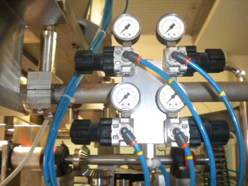 Automatic yogurt potting system (adaptable to other liquid or dense products) in glass jars with two sizes 212 cc and 380 cc; including automatic capper for metal cap Twist off TO 63 (screwed) with a maximum hourly production of about 350 pieces. With two automatic labellers, one for applying the label on the side of the jar and one for applying the closing seal; with an instruction manual in Italian; Cip Siemens Simatic HMI in Italian and Spanish