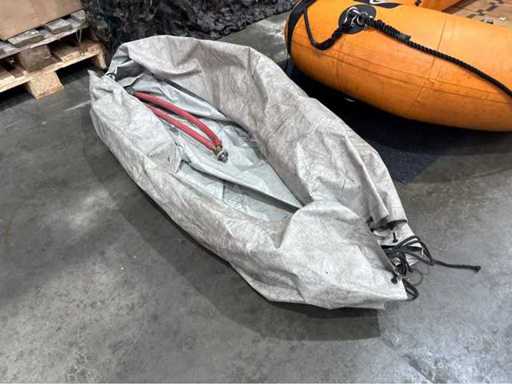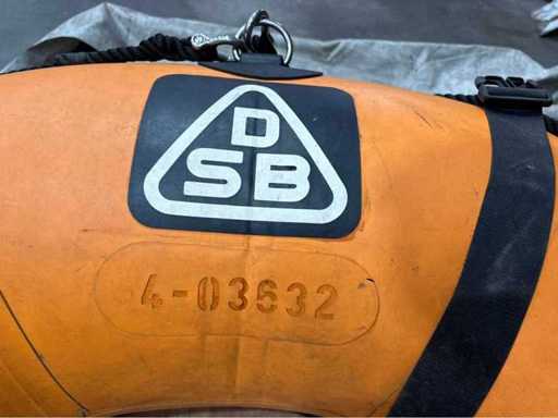 DSB compressed air inflatable boat in used, but functional condition. Ideal for flood situations, rescue operations or training purposes. Very robust special fire brigade model with proven construction. No visible damage to air chambers or valves.
