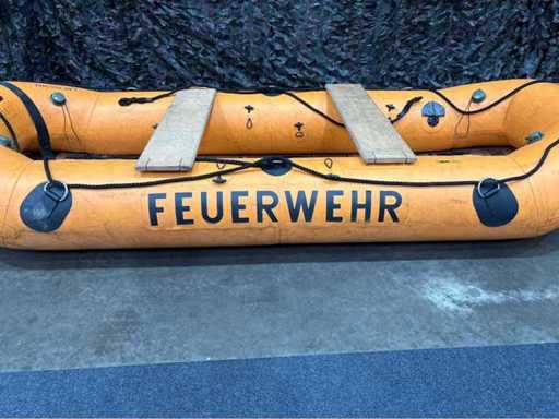 Complete with 2 seat boards, rope guide, D-rings, carrying eyelets and base plates. Lettering "FEUERWEHR" and model identification available. Delivery incl. transport bag with filling hose for compressed air operation.