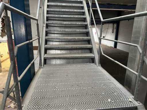 Landing height 5 meters; stairs are a total of 137cm wide; step is 120cm wide; The bottom of the stair closed plate is no longer included; Stairs are disassembled ready for transport.