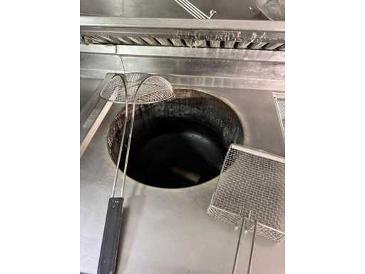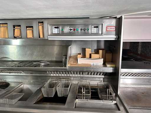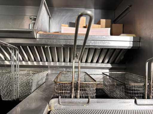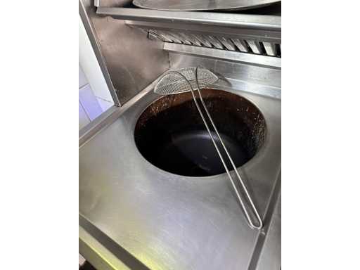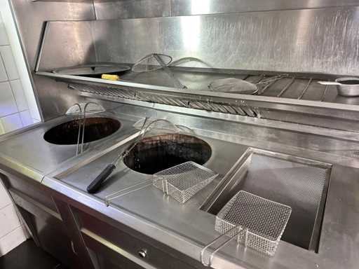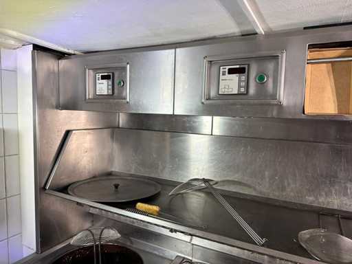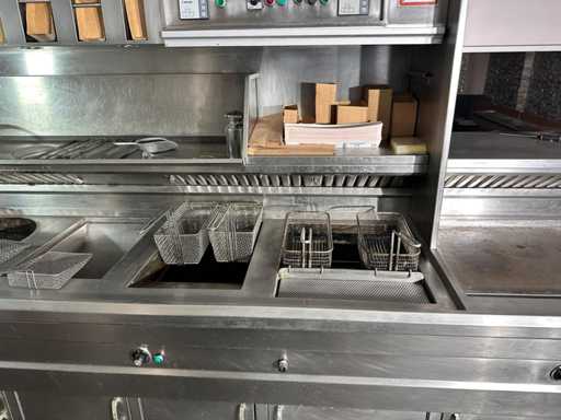 Complete snack baking wall, equipped with 2x round deep fryer 44cm, 4x snack basket, baking tray, au bain Marie.