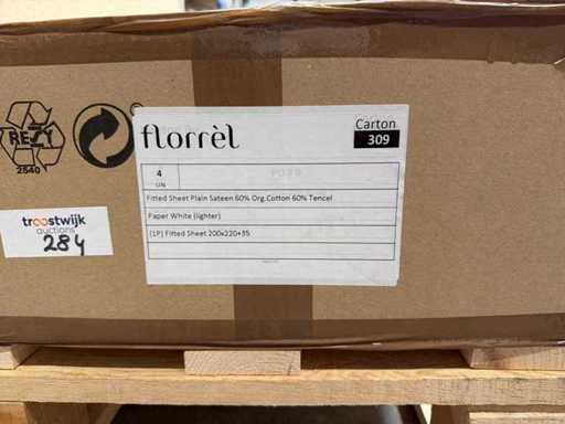 Florrèl Fitted sheet Plain Sateen 60% org. Cotton 60% Tencel 200x220+35 - Paper White (4x)