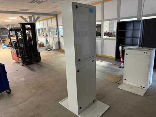 1 folding and folding kiosk with 42-inch touch screen + ticket printer + barcode scanner and various cables - Screen details Brand: iiyama Prolite; Type: TF4320 MSC-B1; Waist: 42 inches (106.7cm); Full HD resolution 1920 x 1080 px; Open frame pro touchscreen - Overall dimensions Height: 212 cm when folded: 108 cm; Width: 66cm; Depth: 100 cm