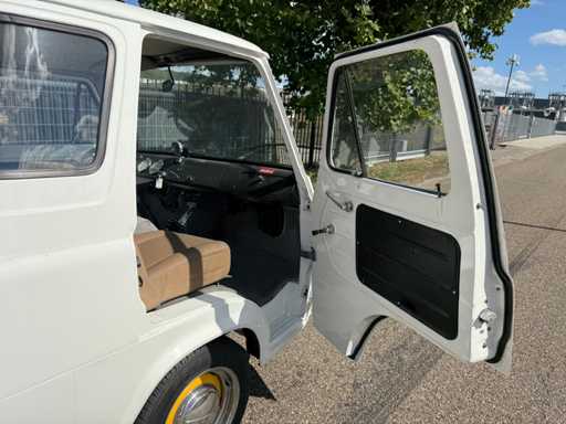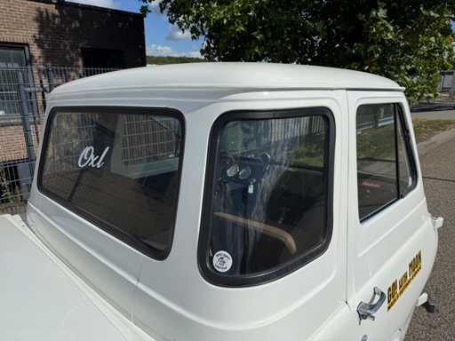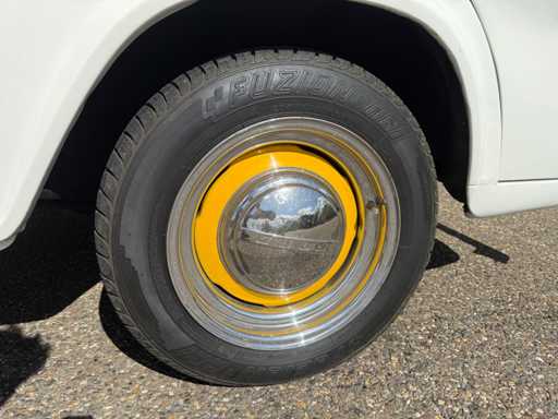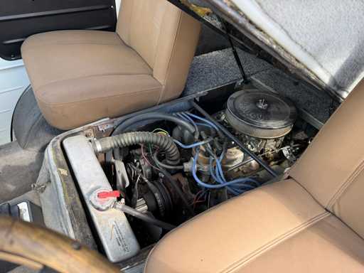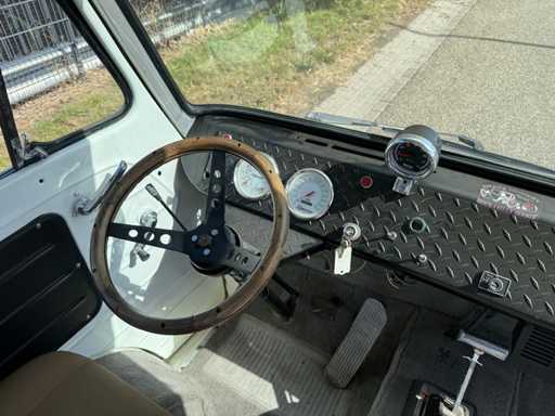 Converted with a 302ci 5.0L V8 engine and automatic transmission. In terms of casis/suspension, this car is otherwise original and equipped with drum brakes all around. This is an older restoration, but looks neat and is a real eye-catcher, ideal as an advertising object.