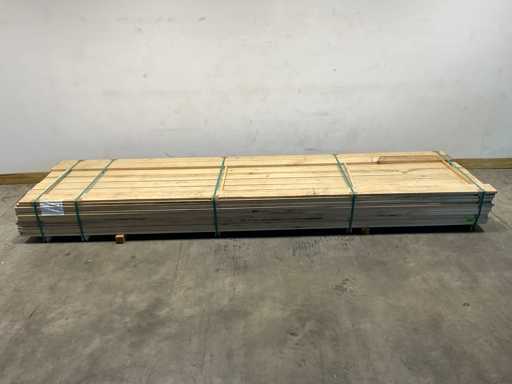 These Fraké planks (B-choice) have dimensions of 425 x 15.5 cm and a thickness of 2.3 cm. Made from strong, durable hardwood, they are perfect for both indoor and outdoor applications, providing an elegant look for furniture, flooring, and construction.