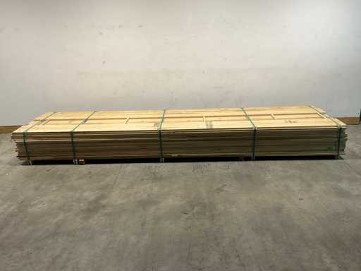 These Fraké planks (B-choice) of 455 x 15.5 cm and 2.3 cm thick are made of strong, durable hardwood. They are suitable for both indoor and outdoor applications, offering a luxurious look for furniture and structures.