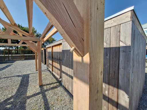 This frame construction with a classic gable roof is made of finely sawn Douglas fir wood and is delivered as a kit.