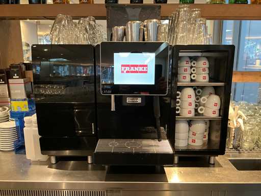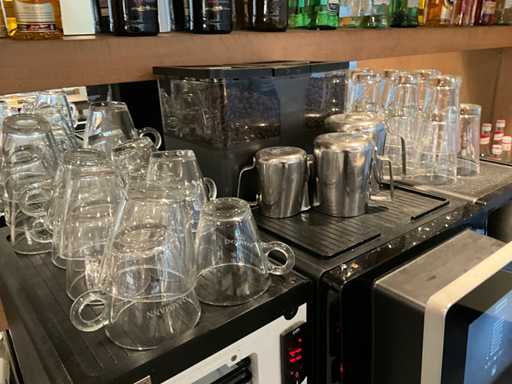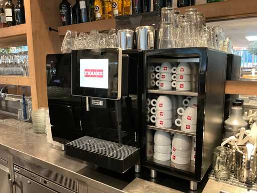 Equipped with milk cooler and cup warmer. Incl. crockery and accessories as shown in photos.