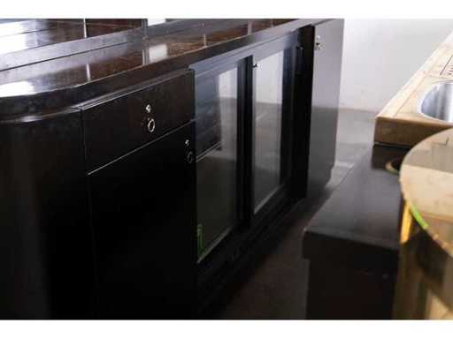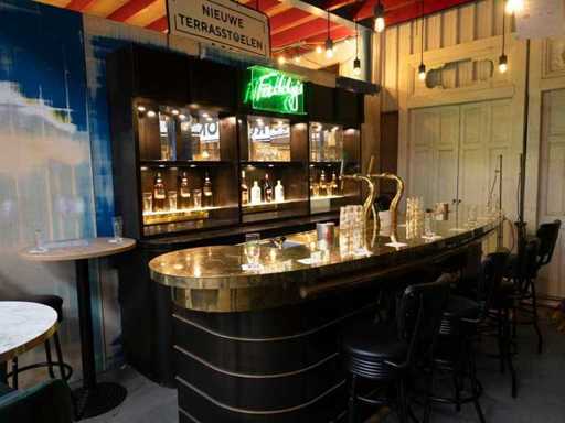 This lot is an official replica of the famous Freddy's Bar from the Hotel De L'Europe. The bar is of high quality and originally designed for professional use at trade fairs. This gives the construction practical properties: the whole is fully mobile and easy to disassemble. To keep the bar tidy during transport or storage, the corresponding protective covers are included. The bar is technically professional with cooling technology from Gamko and comes complete with inventory.