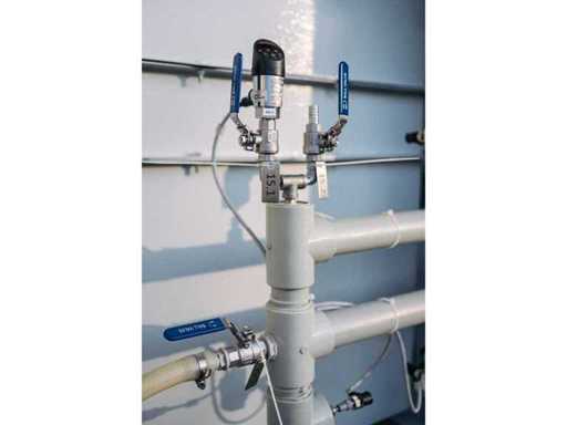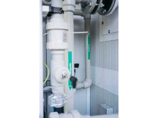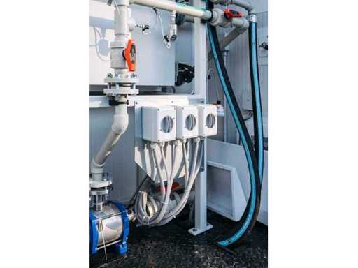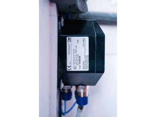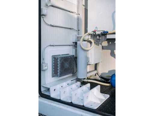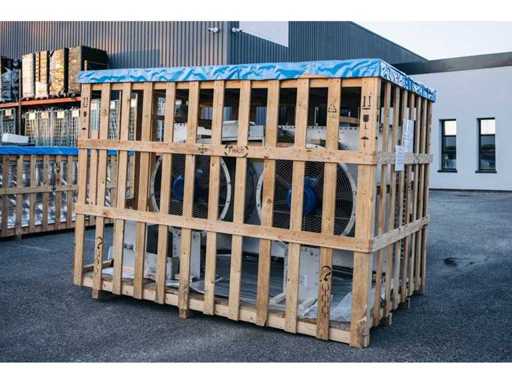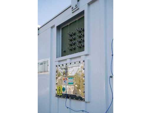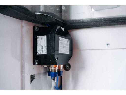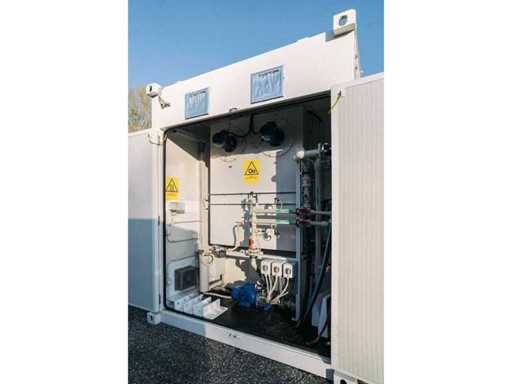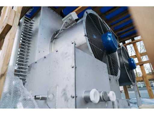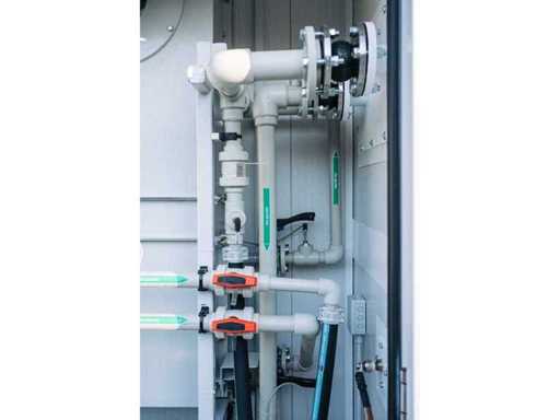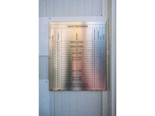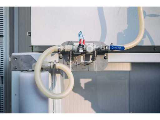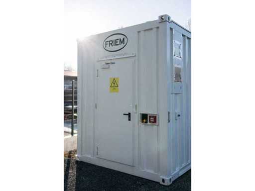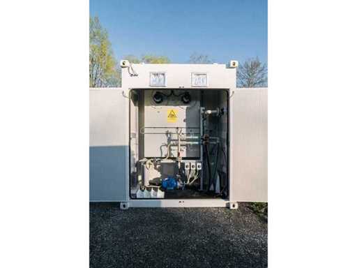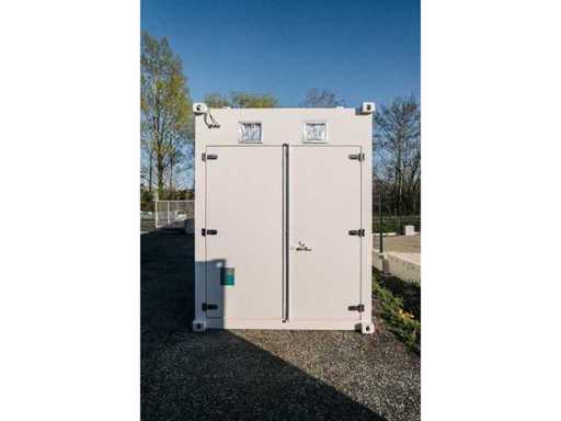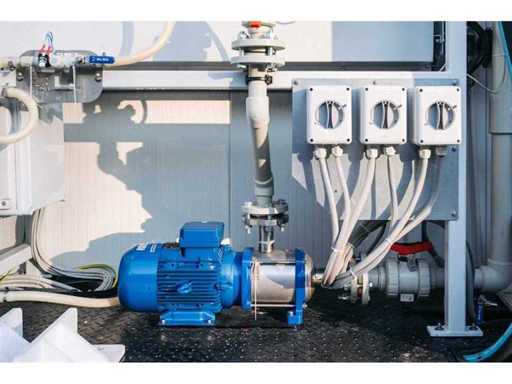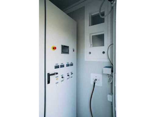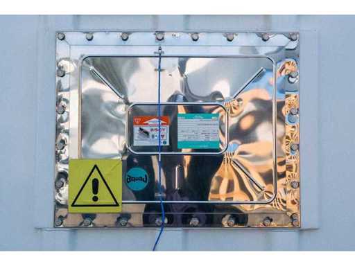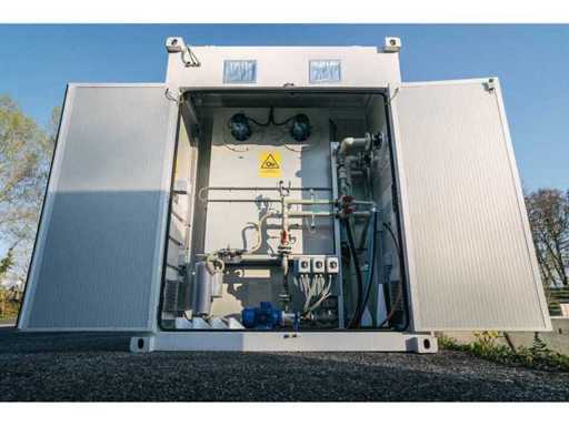 Dimensions L 315 x W 210 x H 228 cm, weight 1200 kg including stainless steel heat exchanger with 3 m plates, air conditioning, electrical control cabinets, stainless steel tank and coupling flanges.