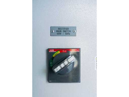 DC power rectifier with 2 Coet SFI122 disconnectors (2 x 2300 A), 2 Texa Industrie ATEX air conditioning systems, Friem thyristor grinder 2 x DRP 7.0, harmonic filters, Rembe EGV explosion door with ES signaling unit.