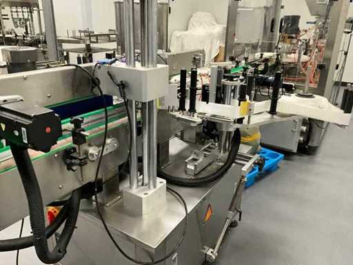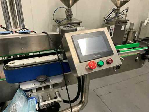 Fully automatic filling, sealing and labeling line