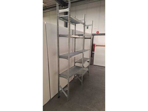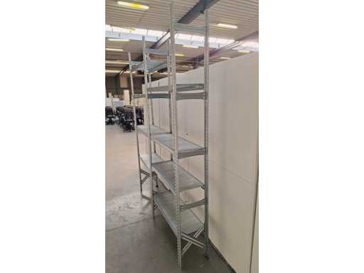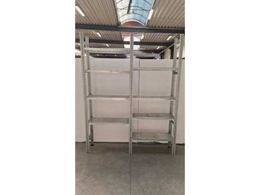 fully galvanized metal rack, 3 upright + 8 shelves, good condition