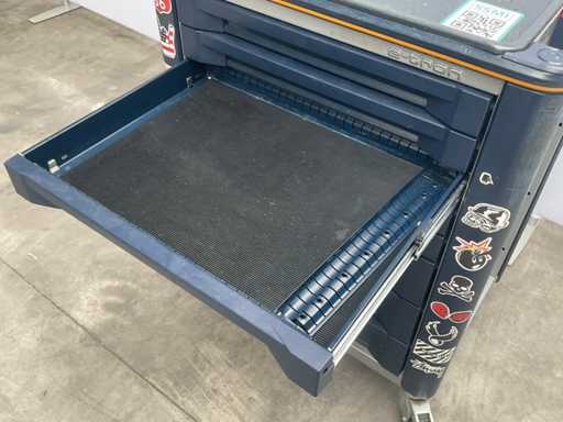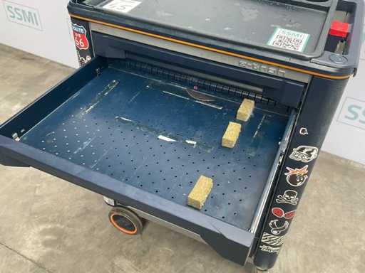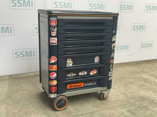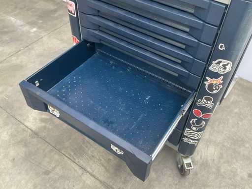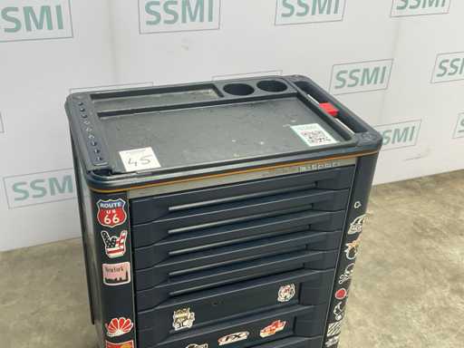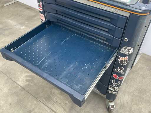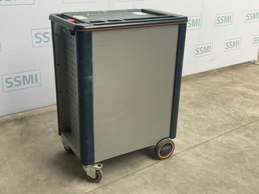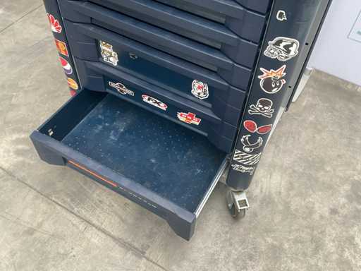 Equipped with 4 transport wheels, 2 of which are fixed, 2x swivel wheel; equipped with 8 drawers; empty