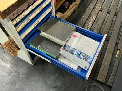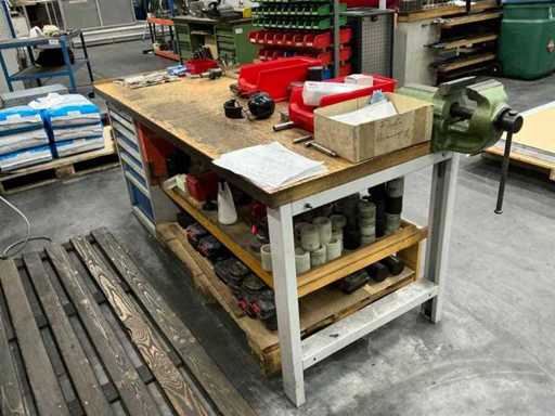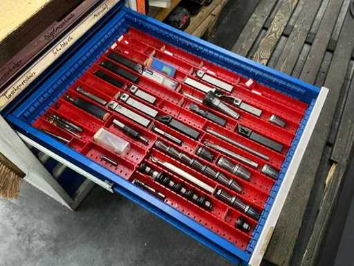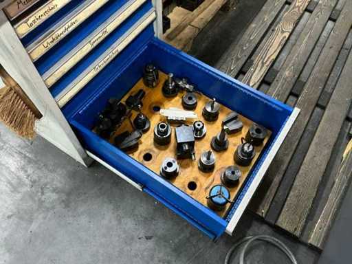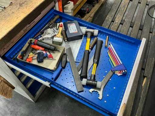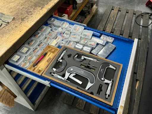 Incl. 1 undermount drawer cabinet with 6 drawers, incl. GARANT-L 125 vice, various measuring tools, thread gauges, hand tools, tools, tool holders, suitable for lot 46