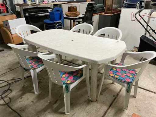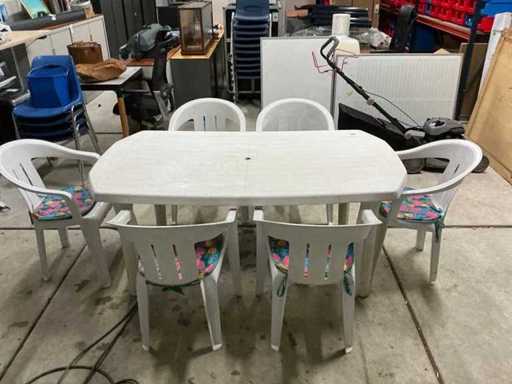 Garden table with 6 chairs and cushions