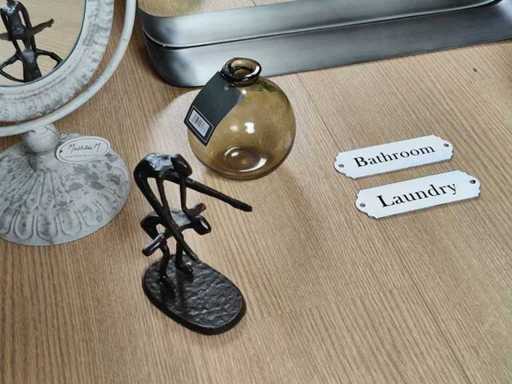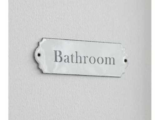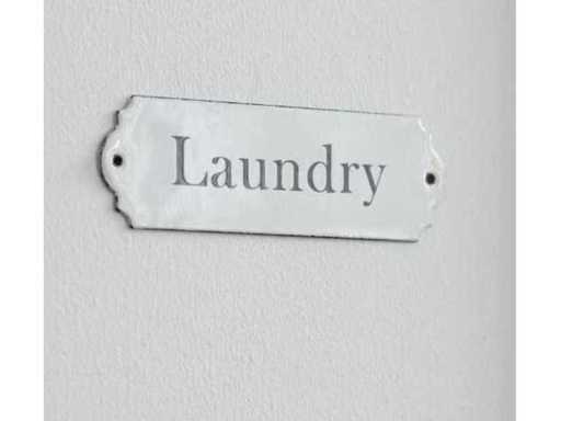 - 2 very fine metal door plates with the inscription 'Laundry' and 'Bathroom'.