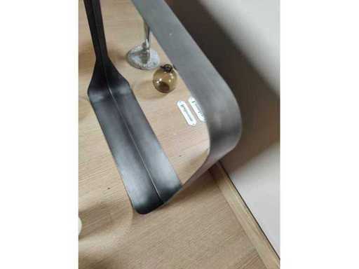 - Wall mirror made of powder-coated metal, dimensions: H50 x W50 x D10.3 cm. The sloping sides form a bottom shelf.