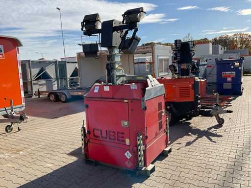 hydraulic telescopic mast; maximum mast height 8.5 meters; Kubota diesel engine; light sensor; timer; 4x 120 Watt LED lamps; hours reading not readable; 4x extendable outrigger feet; 230 Volt connection; forklift slots; Lifting eyes; battery needs to be replaced; working condition;