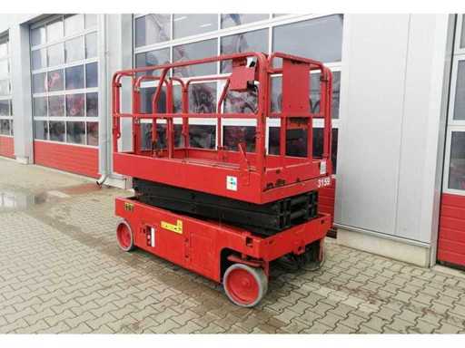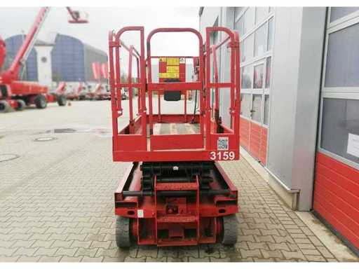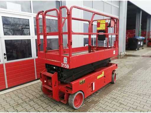 Internal No. 3159, transport height without railing 1.60 m, ground clearance 0.10 m, lifting capacity on extension 113 kg, white tires, platform length extended 3.70 m, anchor points for restraint systems (PPE) available. Note Batteries defective, functions given,