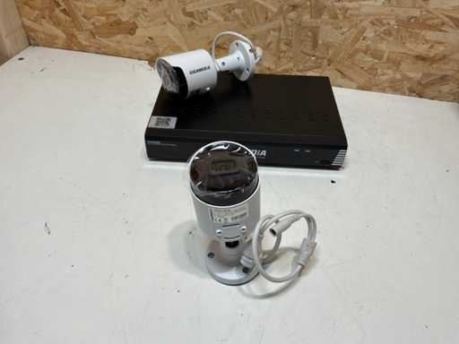 Includes 2 cameras, DVR and monitor with mounting bracket.