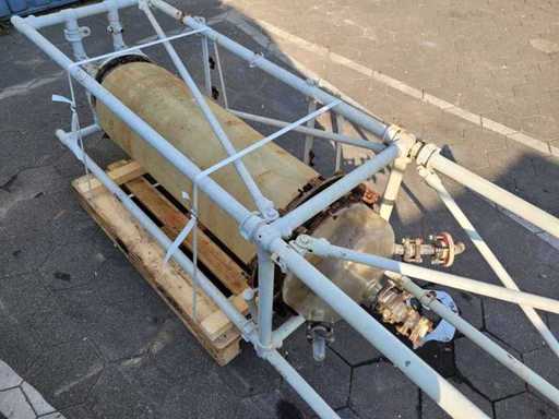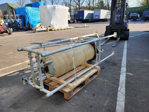 Vertical column in steel frame. Dismantled and ready for transport