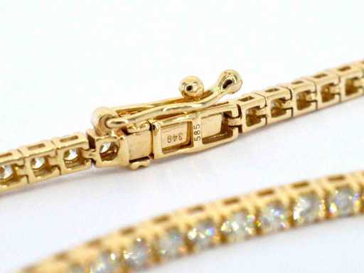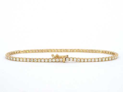 Diamond: Natural; Quantity: 77 pieces; Cut: Brilliant cut; Weight (carat): 2.30 carat; Color: H; Purity: SI; Cut: beautiful; Jewel: Bracelet; Weight: 5 grams; Dimensions/length: 17.8 cm; Material: 14k gold (585); Condition: New; Packing: Luxury jewelry box; Explanation: The quality has been taken from the report belonging to the item. The valuation is an assessment of a certified diamond dealer, based on consumer prices; Consumer price: € 8,103