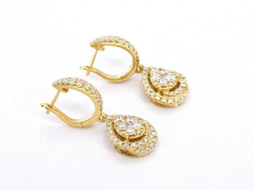 Golden drop-shaped earrings with brilliant-cut diamonds