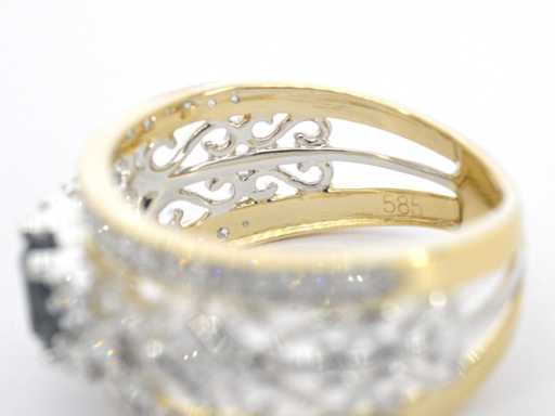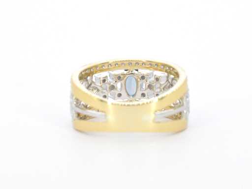 Golden exclusive ring full of diamonds and a gemstone