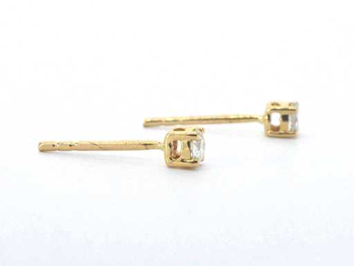 Gold solitaire earrings with brilliant cut diamonds