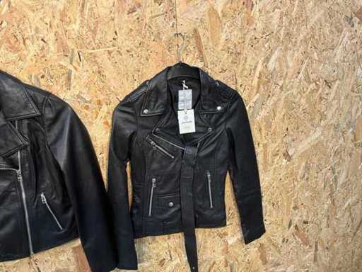 Various women's leather jackets in different models, colors and sizes.