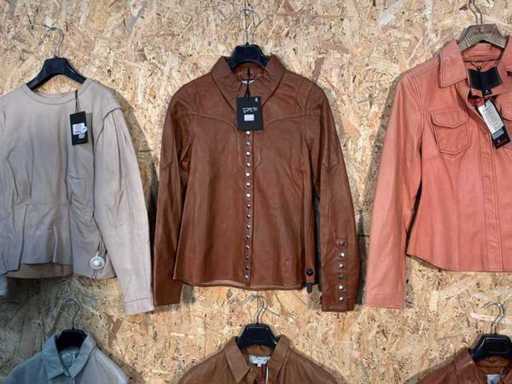 Various women's leather jackets in different models, colors and sizes.