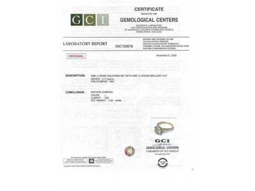 Gorgeous Luxury Solitaire Ring Natural Diamond 2.08 carat in 14k pink gold total weight 3.17 gr. with a large natural diamond round brilliant cut, good color et good purity J/VS2 of 2.08 carat. Certified by GCI Laboratoire, one of the largest international certification and evaluation institutes for diamonds and precious stones. More information see the certificate. The jewelry in reality is better than the photos. Retailer's estimate price: 42'450.-