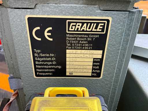 Professional industrial T-milling machine of the quality brand Graule Maschinenbau GmbH (Germany), type AKF 6/260, year of construction 2000. The machine is technically working and can be used directly for production environments in aluminum and plastic processing. This milling machine is designed for precision, profile and connection technology and is extremely suitable for window, door and profile systems (aluminium/plastic). Pros: Machine is working, Solid German industrial build quality, Very stable construction, Compact floor area → suitable for smaller workshops, High precision in profile processing, Mechanically simple → easy to maintain, Immediately usable in production, Pneumatic functions increase production speed, CE certified, Industrial 400V connection - Features and equipment: Manual milling movement, Height adjustment milling shaft via handwheel, Adjustable milling boxes up to approx. 20°, Adjustable milling boxes, Pneumatic profile clamping, Pneumatic cooling atomization, Robust work table, Industrial motor unit, Stable cast steel construction - Applications T-joints, Profile processing, Window and door constructions, Aluminium systems, Plastic profiles, Series production, Workshops, Joineries, Aluminium construction companies - machine is FUNCTIONAL - pallet truck available