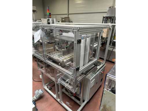 Manufacturer: Greenhouse Conveying and crating of bulk tubes Year: 2016 Serial Number: 816118 Overall dimensions (W x D x H): 2200 x 2000 x 2200 Unloading of "products" into crates via a servo-controlled hopper. It's the volume that is released into the crates (so we don't count the products) 2 loading lanes (255 x 180 x 190) expandable Discharge of the crates filled with product via the 360 mm roller conveyor. Be careful, here, the cash registers are not closed or taped Incomplete equipment Adaptation, completion and formatting possible in our workshops, you can contact us. Weight: 350 kg Technical documentation: Details on request Incoterm: FCA Ref. 6581