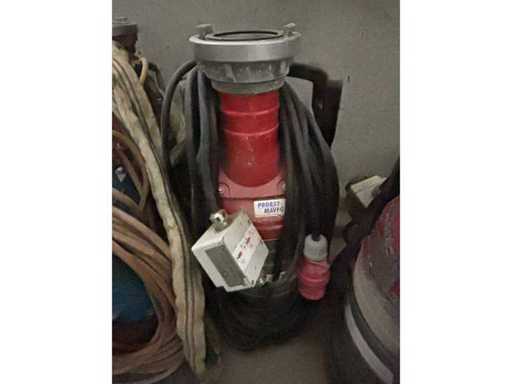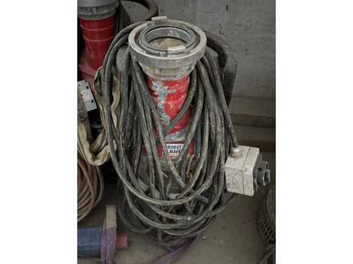 Electrical submersible dirty water pump IP 68; max. delivery height 21.5 meters, max. power 2040 Lit/min., max. power consumption 4.5 kW, pressure connection 3", weight 52 kg, electricity 400V/50HZ/3PH/GU; Required accessories: Fixed coupling B75 IG 3"(606223); optional accessories: floor suction sleeve (620179); Dimensions: Ø 286mm, height 800mm; Weight: 52kg