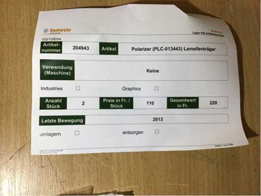 Description: including 2 Polarizer slat carriers, see photos for more details