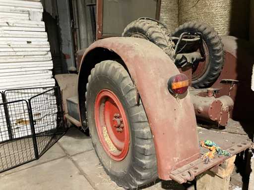 Consists of: Hanomag R40 1954, engine D57, 4 cylinder, 40hp, restoration object, registration present, in original condition, 2 spare front tyres with rims, no frost damage, engine runs, ran a few years ago, always stood still afterwards.