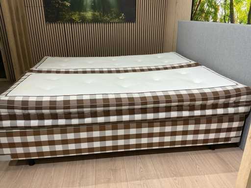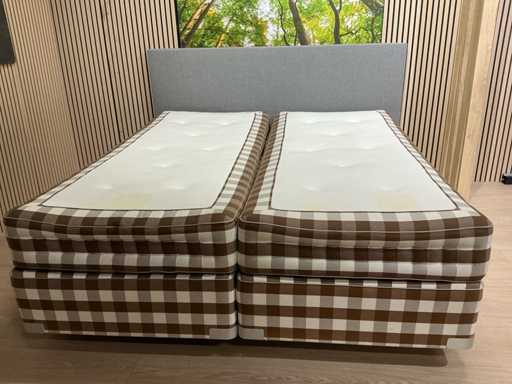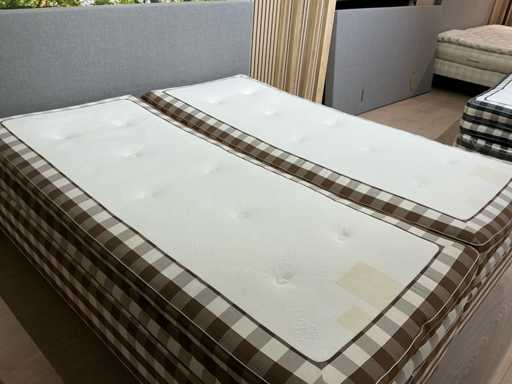 Hästens 2000T box spring in the size 180×210 cm, including a high-quality BJX topper. The 2000T model is a top model within the Hästens range and is known worldwide for its exceptional sleeping comfort, high-quality materials and artisanal craftsmanship. The bed combines multiple layers of horsehair, wool, cotton and flax with an advanced pocket and bonnell spring system, providing optimal support and pressure relief while sleeping. The bed has a solid Swedish pine wood frame, which contributes to stability, durability and a luxurious look. The included BJX topper increases sleeping comfort and provides extra ventilation and a pleasant lying feeling. ⸻ Specifications • Brand: Hästens • Model: 2000T medium/firm • Type: Box spring / top model • Size: 160 × 210 cm • Includes: BJX topper • Material: Horsehair, wool, cotton, flax • Frame: Solid Swedish pine wood • Height: approx. 69 cm including topper ⸻ New price The new price of this bed including BJX topper is approximately €72,000,-. ⸻ Particularities • Handcrafted top model with traditional craftsmanship • Combination of pocket and bonnell springs for optimal support • Luxurious natural materials for ventilation and comfort