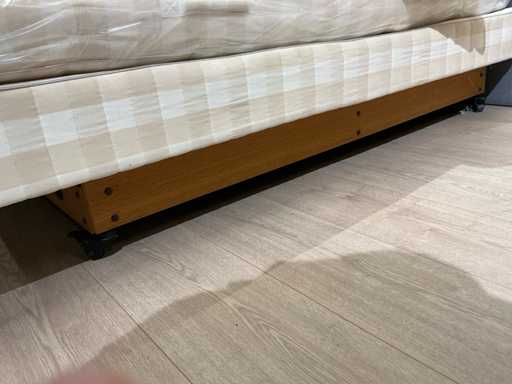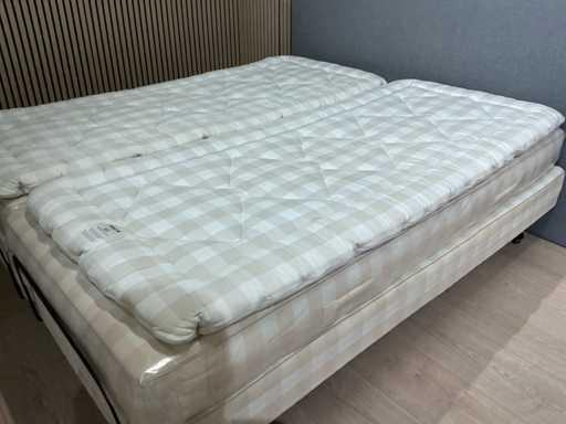 Offered for sale: a Hästens Adjustable box spring, electrically adjustable and equipped with BJ toppers. The mattresses have a soft & medium firmness and offer the characteristic luxury comfort of Hästens. This bed is ideal for those who want to combine electrically adjustable sleeping comfort with top quality mattresses. ⸻ Specifications • Brand: Hästens • Model: Adjustable • Type: Electrically adjustable box spring • Size: 180 × 210 cm • Hardness: Medium & soft • Toppers: BJ toppers included • Controls: Electrically adjustable ⸻ Particularities • High-quality sleeping comfort • Electrically adjustable • Including BJ toppers