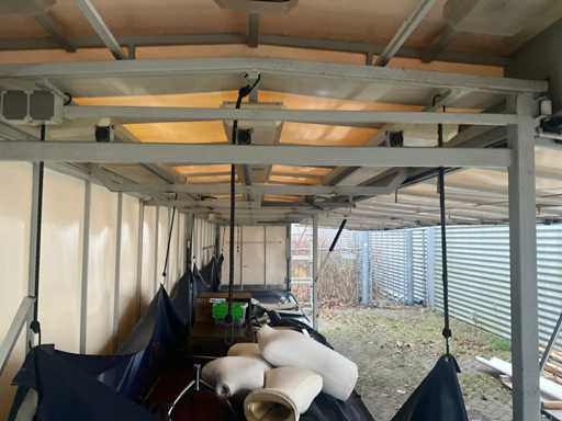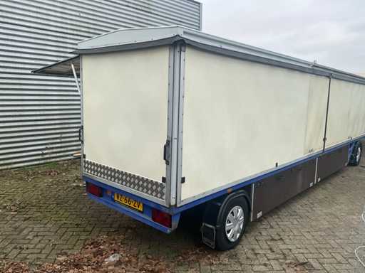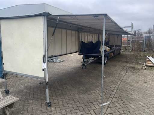 Extended, the total length is 1290cm, equipped with lighting and power connections, equipped with 3 awnings on both sides, height of the awnings 200cm, including sails