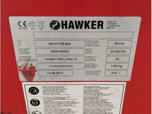 Hawker - 48V 9 PZB 900 - Forklift Battery - 2014