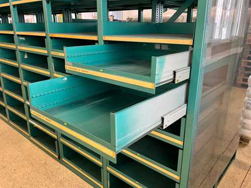 Double-sided, can also be built on one side, with 153 pull-out drawers, 34 shelves, see photos for more details