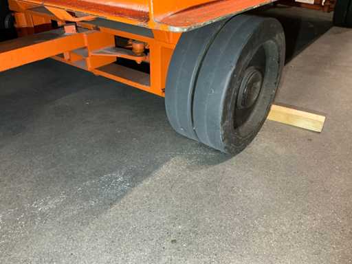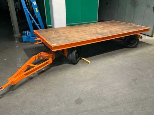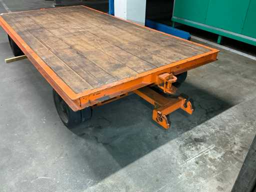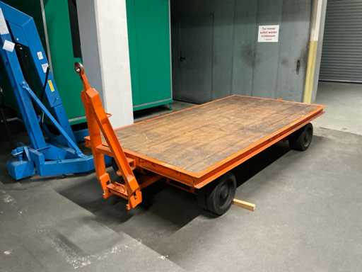 Maximum load 10000 kg, dimensions including drawbar, drawbar can be hooked in front and rear, all wheels steered, weight estimated approx. 500 kg