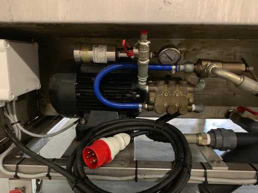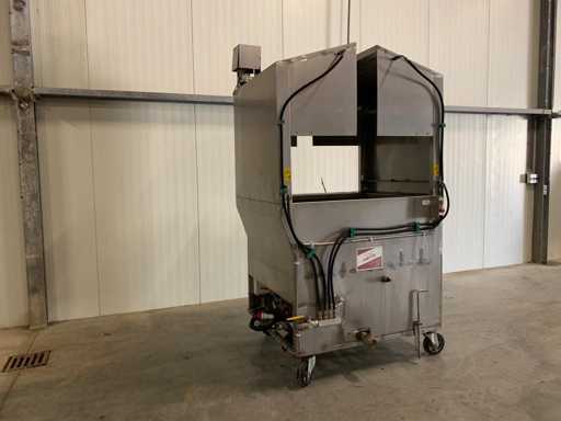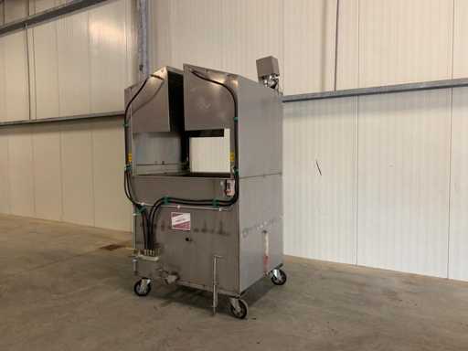 high-pressure pump; 2 movable nozzles; height of inlet 1400 mm; input width 1300 mm, 16A 5-pin plug, all stainless steel, solid rubber wheels