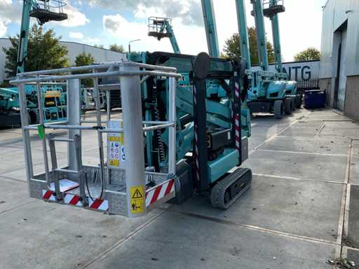 Maximum 360° rotation, indoor and outdoor use, equipped with Lithium-ion battery, 4 outriggers, non-marking tracks, double travel speed, built-in charger, track width 798 mm, air/water/electricity connection in manbox, automatic leveling