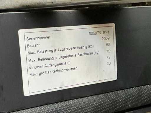 Equipped with 3 compartments (103x46 cm), Cabinet thickness approximately 5 cm, lockable, 2x Hoffman chemistry cabinet 1x chemistry cabinet (110x46x112 cm)